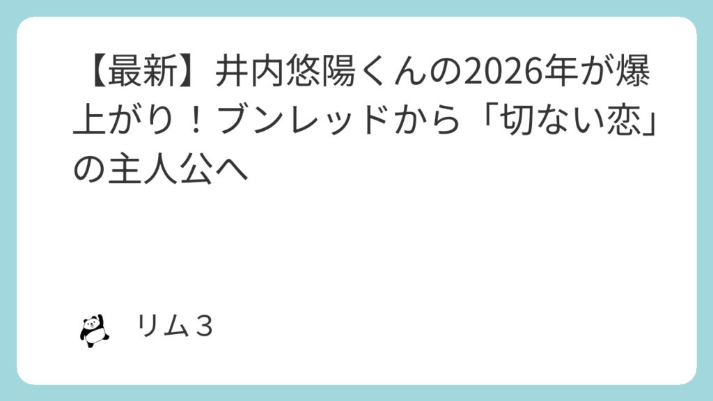 まとめ:最新の井内悠陽くんから目が離せない!