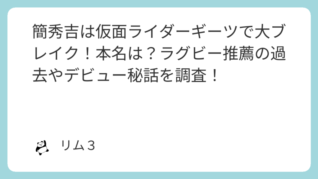 今回は、気になる本名の噂から、ラグビーに捧げた学生時代、さらには芸能界入りのきっかけまで、簡秀吉さんの魅力をたっぷりお届けします!
