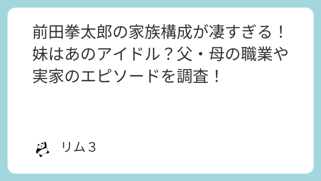 今回は、前田拳太郎さんの華麗なる家族構成について、気になる情報をまるっとまとめてお届けします!
