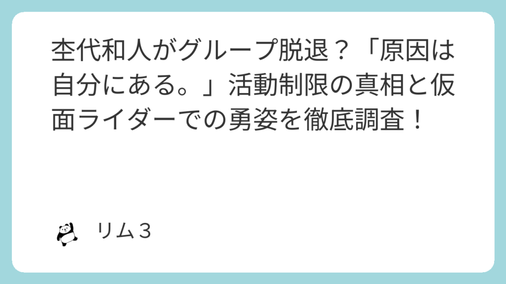 そこで今回は、脱退が噂された本当の理由や、グループへの想い、さらには「料理男子」としての一面まで、杢代和人さんの魅力を深掘りしてご紹介します!
