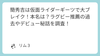 俳優 簡秀吉は仮面ライダーギーツで大ブレイク!本名は?ラグビー推薦の過去やデビュー秘話を調査! 仮面ライダーギーツ主演・簡秀吉さんの意外な素顔を徹底調査!本名は「簡宏嘉」で『今日好き』に出演していた?ラグビー強豪校出身で京都選抜だった過去や、怪我からスカウトされたデビュー秘話まで。ギーツの浮世英寿とは違う、熱い素顔に迫ります! 2023.04.08 俳優