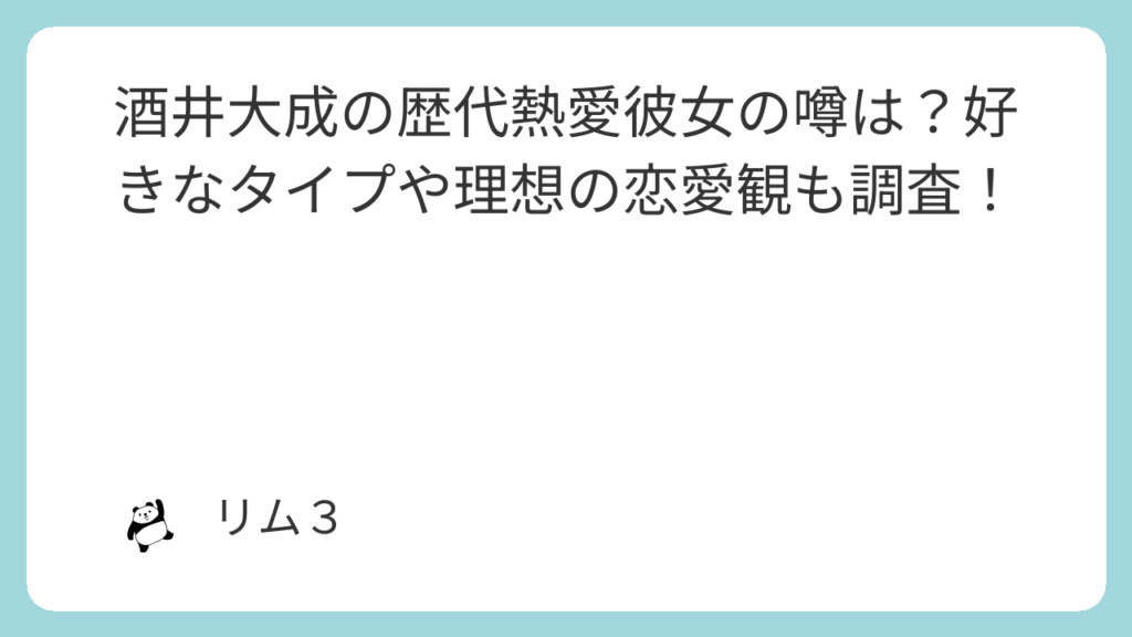 酒井大成の「好きな女性のタイプ」を深掘り!