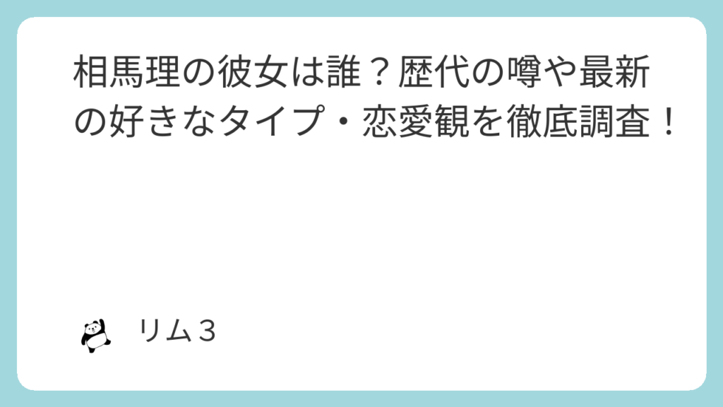 今回は、相馬理さんの恋愛事情について、過去の噂から理想のタイプまで詳しく探っていきたいと思います!